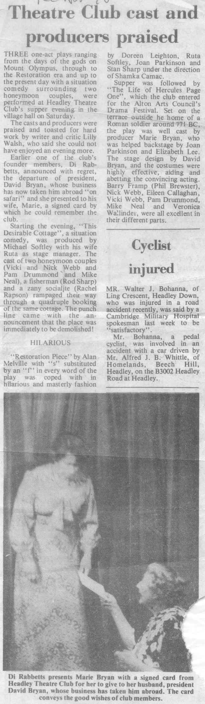 Report of the Headley Theatre Club's production of One-Act plays, November 1978