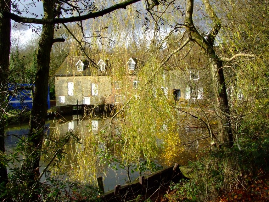 viewed from across the mill pond and Headley Mill Farm (now Wey House),