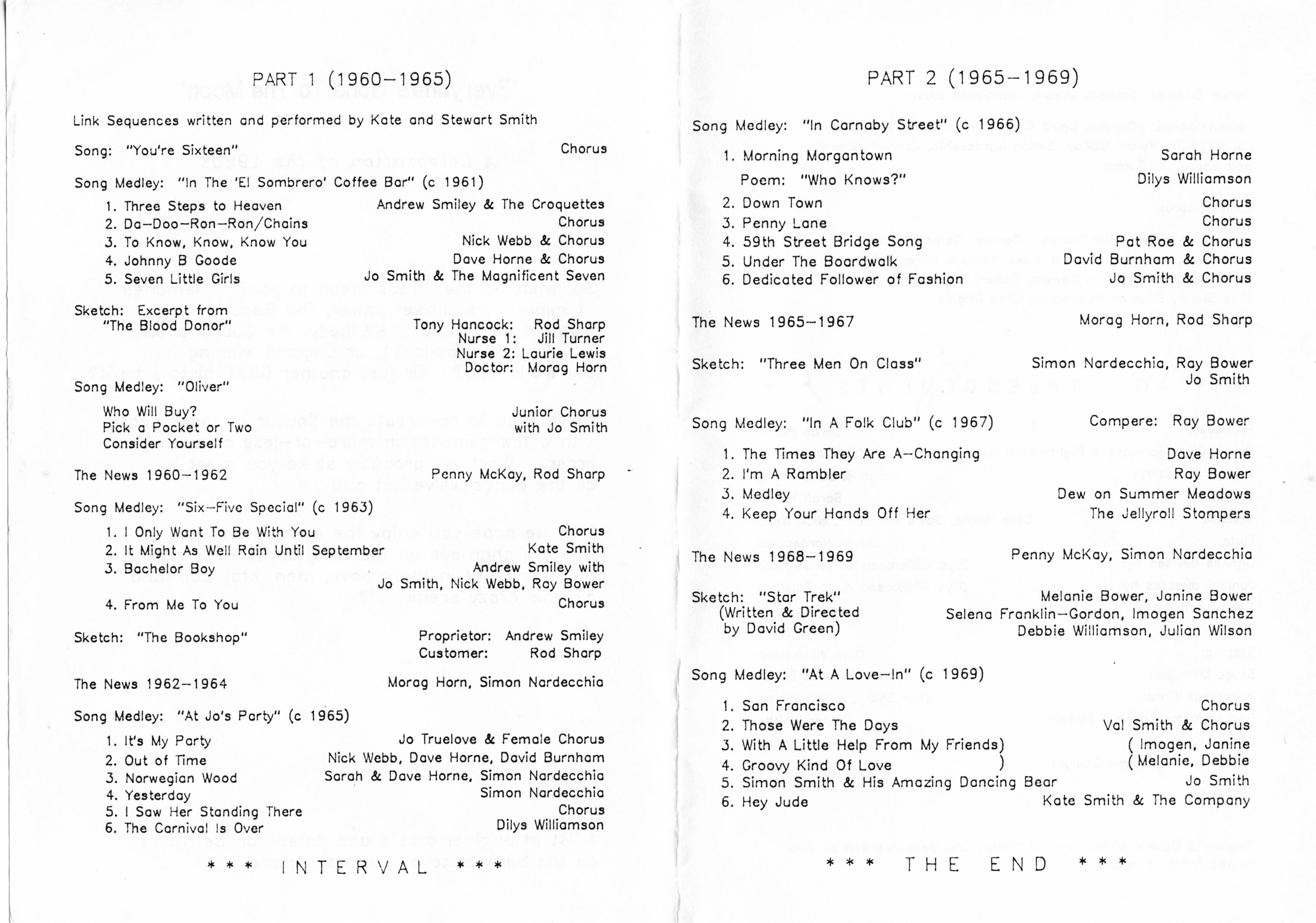 | 1969 | Albert Laddin: mini-panto & Costume Party (director: Dawn Lewcock) - ticket |