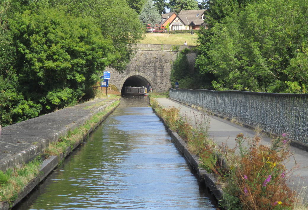 We've been for a week on the Llangollen Canal on the good ship "The Piggy Wig". The weather was generally fine. VERY slow progress against the current through the narrow sections (thought we must have something round the prop going over Chirk aqueduct, but not so). Had a strange experience coming through Whitehouse Tunnel when it seemed someone was shining a powerful searchlight in at the other end, blinding boaters coming out – but turned out it was the sun reflecting off the windscreen of a small boat moored upstream. It was windy going over Pontcysyllte aqueduct, and again very slow, which was rather scary. The final few miles into Llangollen itself was single-file and also slow going – we hoped we wouldn't meet anyone coming the other way – luckily we didn't.