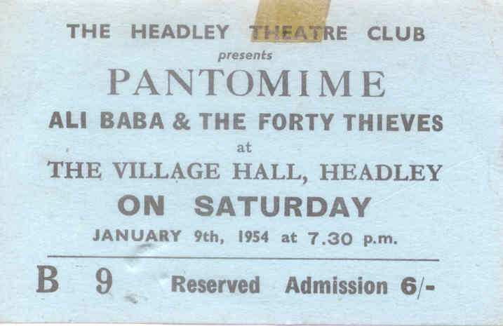 Ticket from the Headley Theatre Club's production of 'Ali Baba & the Forty Thieves', January 1954