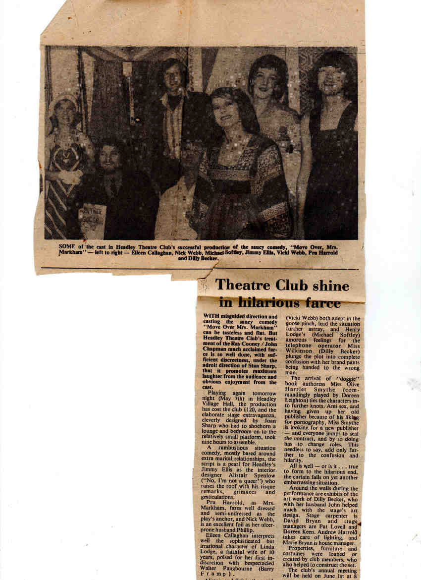 Photo of the cast for Headley Theatre Club's production of 'Move Over Mrs Markham', May 1977