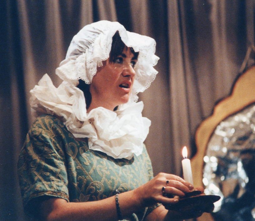 Val Smith finding her way with a candle (did we have a real lighted candle on stage?) |