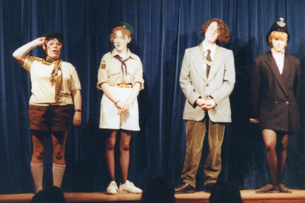 Finally, on a jollier note, the Youth Group presented Arthur, directed by Jo Truelove with Owen Tribe in the title role and Melanie Bower as his arson-inspiring aunt. Other parts were played by Lizzie Creasey (Mayor), Stephen Saxey (Fire Captain), Brian Jones (Fireman), Giles Wrigley (Fire Chief), Debbi Williamson (Denise), Heidi Farnlucher (Police Inspector), Janine Bower (Gertrude), Victoria Lockyerfield (Scout Commissioner), Tiffany McKay (Scout) and Donna Gard and Karina Farnlucher (policewomen).