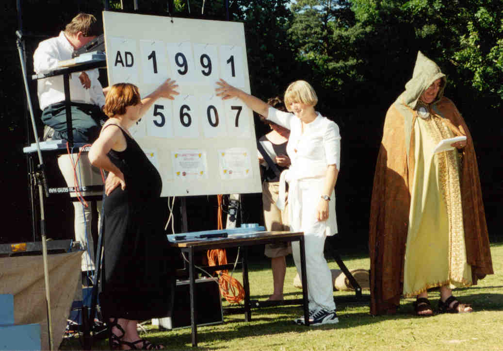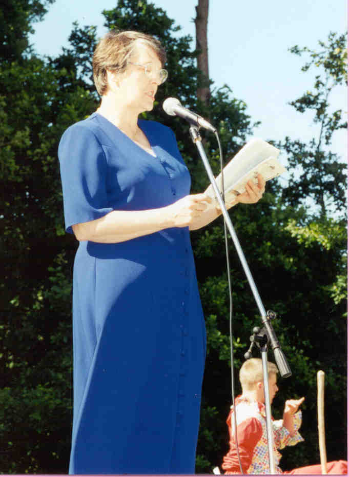 Ray Bower declaiming his Ode to the Saving of the Rectory Field, 1987 |