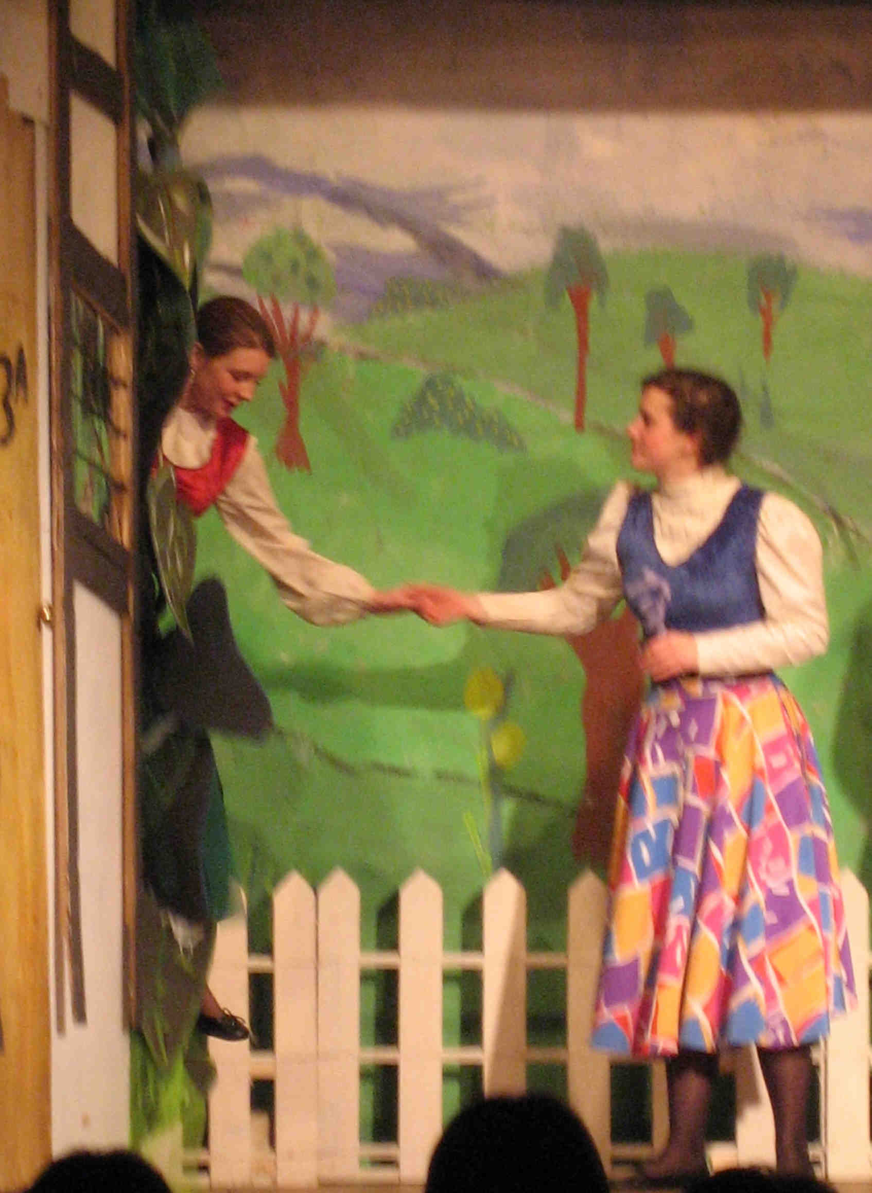 The Chorus in full dance and song outside Widow English's cottage |