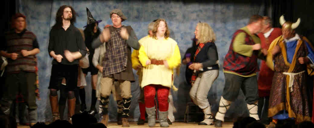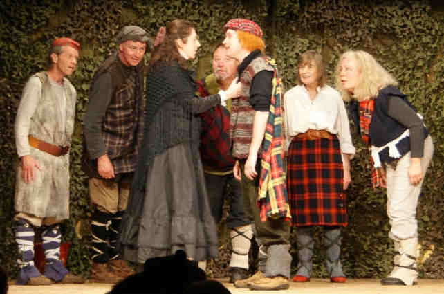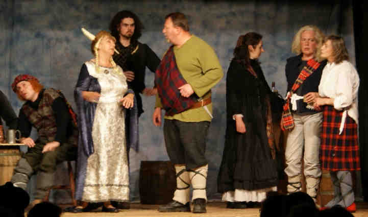 Great Scots! L to R: Birnam Wood (Jill Turner), Banquo (Pru Harrold) & Duncan (Martin Wellen) |