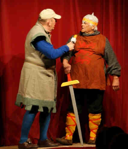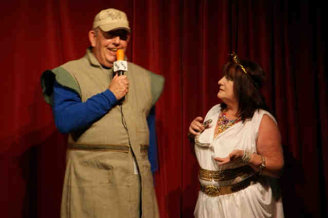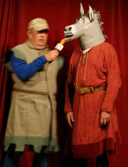 Lady Godiva (Vicky Meadows) and Hamlet (Luke Oates) "Somebody should write a play about it" |