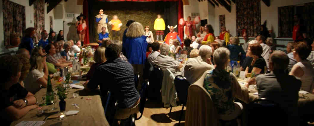 The wenches were ready and waiting in the foyer for the invasion! (L to R: Tina Wareham, Sheila Wareham, Janet Hardinge) |