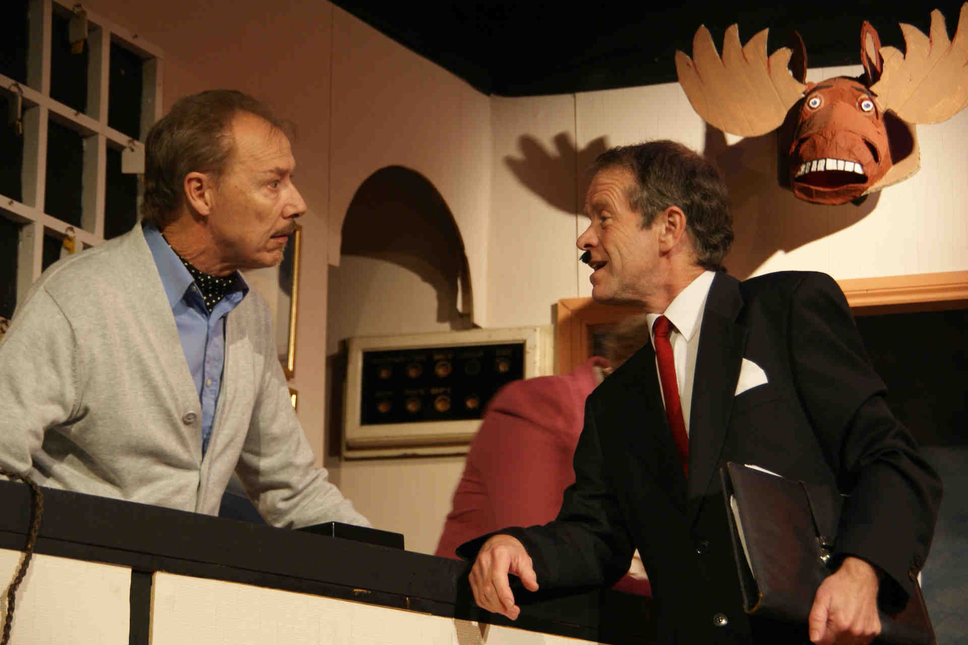 Basil Fawlty (David Burnham) deals with Mr Hutchinson (Rod Sharp) |