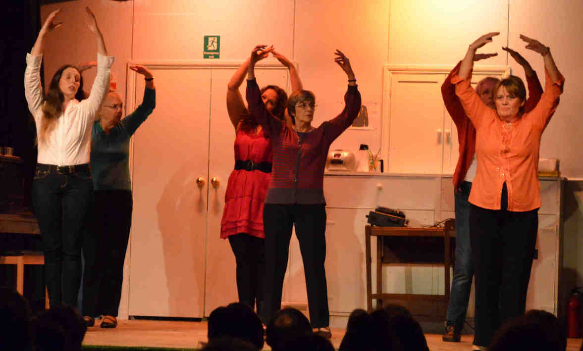 Chris, Annie (Pru Harrold) and Cora (Mel White) are enthralled with a talk on broccoli by Brenda Hulse (Wendy Downs) |