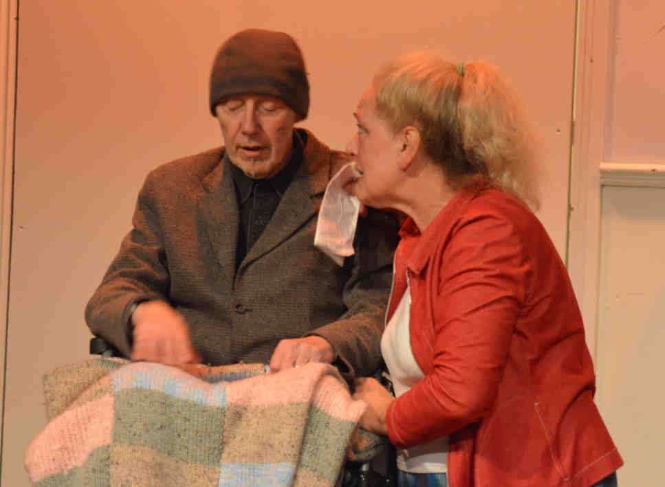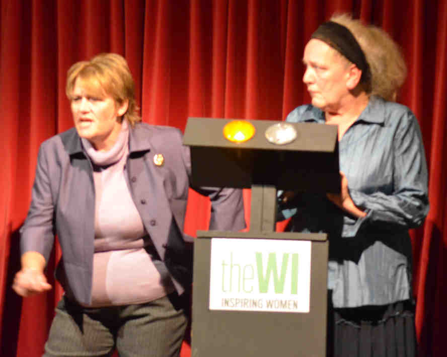 Marie (Dil Williamson-Smith) confronts Chris (Tina Wareham) about a lack of flowers in the Hall |