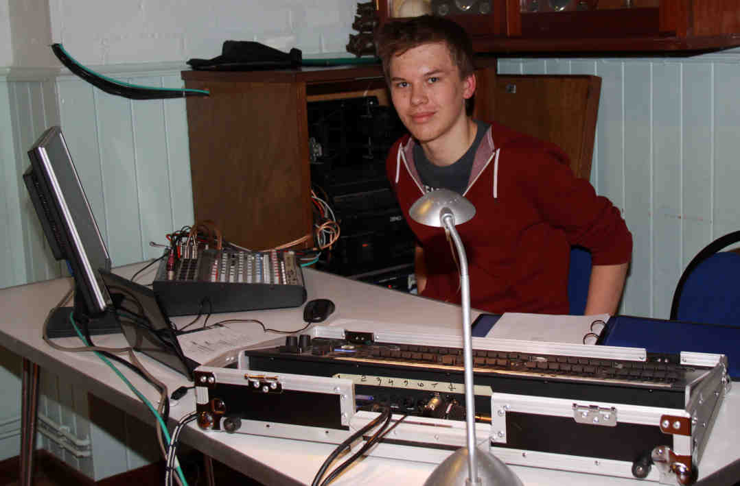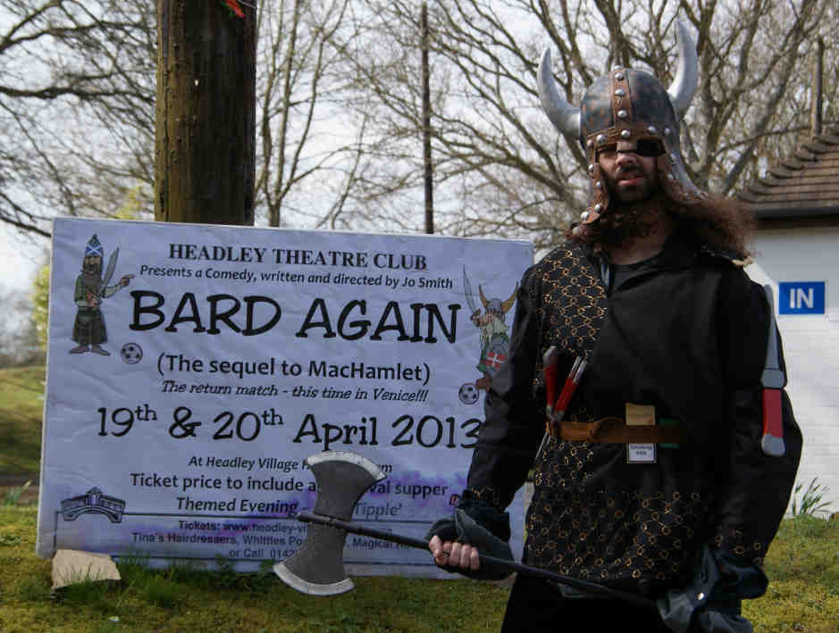 Hamlet (Luke Oates) guards the poster outside Headley Village hall |