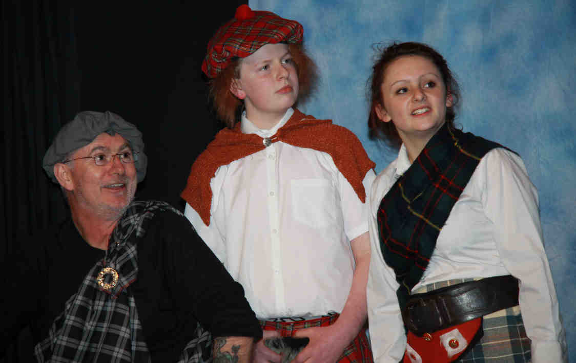 Glen (peter Glinn), Birnam (Thomas Hiller) & Banquo (Katherine Wellen) - S'cot to be a good idea. |