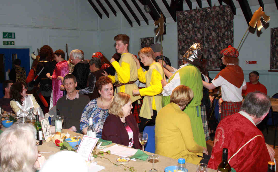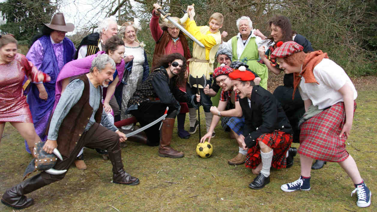 Beth Macbeth (Rachel Spiller) with a few of her Scots team: Glen (Peter Glinn), Mac (Mark Spiller), Birnam (Thomas Hiller) & Morangie (Rod Sharp) on the Village Green. |