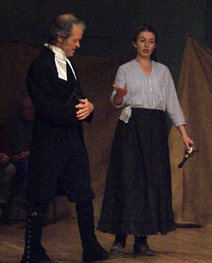 As the finder of the abandoned baby, and later her husband, Luke Oates played the deranged and self-centred Broomsquire of the title with passion and total conviction. Here is a local amateur actor who clearly absorbs himself into a part and is dedicated to the craft.