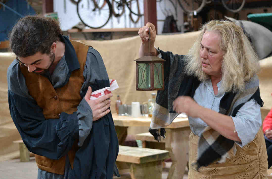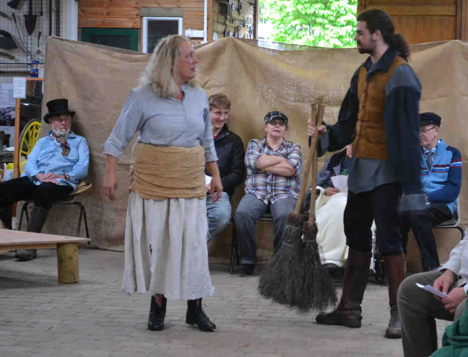 while Jonas the broomsquire (Luke Oates) butters up the audience. |