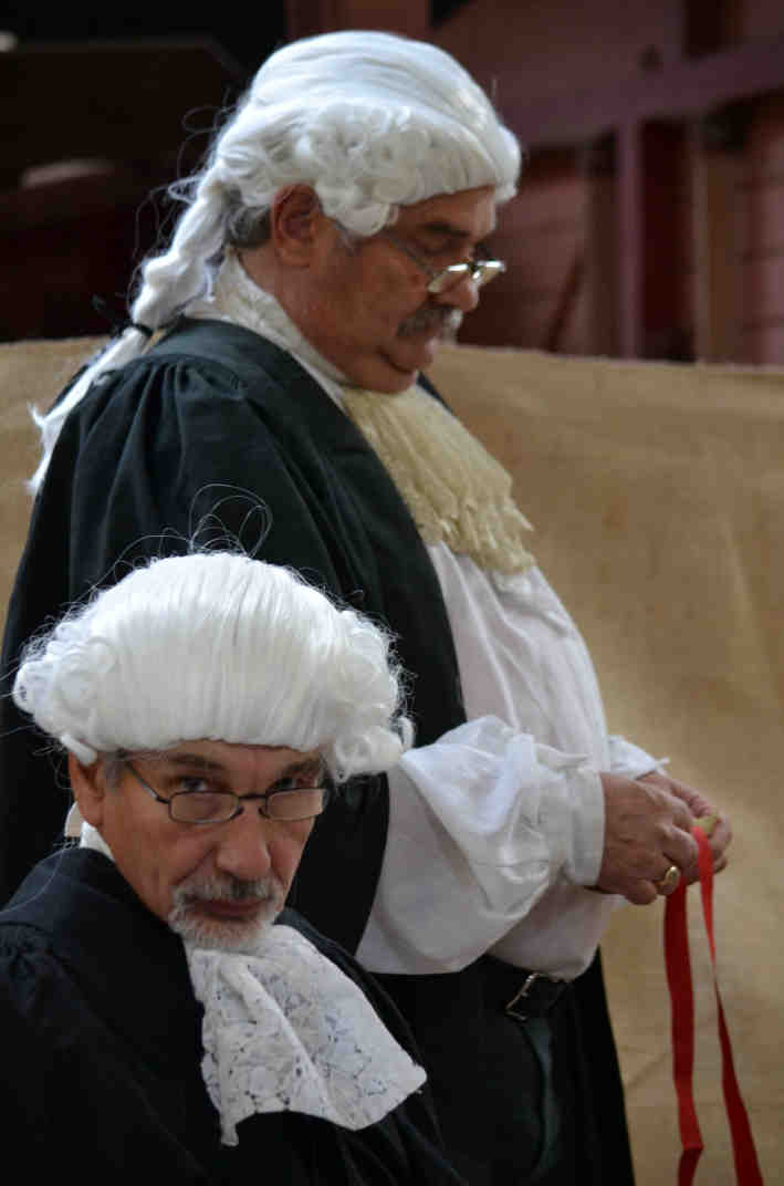 A co-opted jury listens attentively to the evidence. She's 'not guilty'. Phew! |