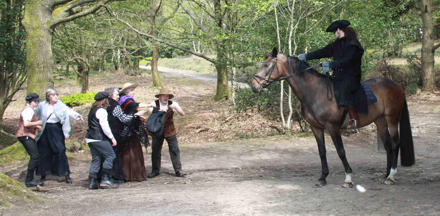 William Cobbett (Nick Webb) berates his guide (Luke Oates) for getting him lost on his way from Headley to Thursley. |