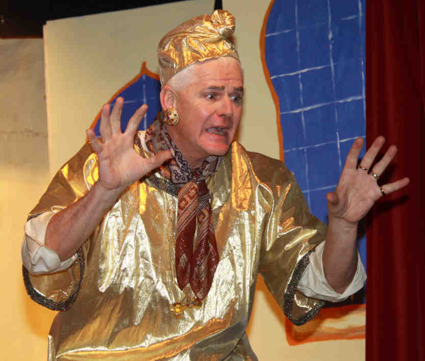 Martin Wellen in the title role proved himself more than equal to the part, henpecked by bossy Barbara, his wife, played with obvious relish by Penny McKay and surrounded by an army of troublesome relatives, not least his money-grabbing, oil rich brother, Cassim (Jonathan Neil). Special mention must go to Tina Wareham as Cassim's wife, Fatima and Hugo Millard as his daughter, Rhum Baba. Their comic double act was a highlight of the show.