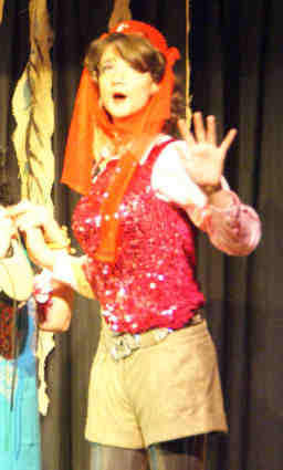 Pantomime villains come in many guises but with Nigel Owens as Rashah al Gammon, the Robber Chief, there was no mistaking that here was a force to be reckoned with! His rapport with the audience was immediate, eliciting much booing, hissing and some unscripted moments of ad lib that threatened to 'bring the house down'! With his band of forty thieves reduced to five (Headley's stage is, after all, somewhat compact!) he was finally given his 'comeuppance' in true panto style!