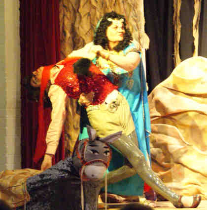 And here he is! L to R: Delilah the donkey, Ben Baba (Thomas Edser), Ali (Martin Wellen) & Cassim (Jonathan Neil) |