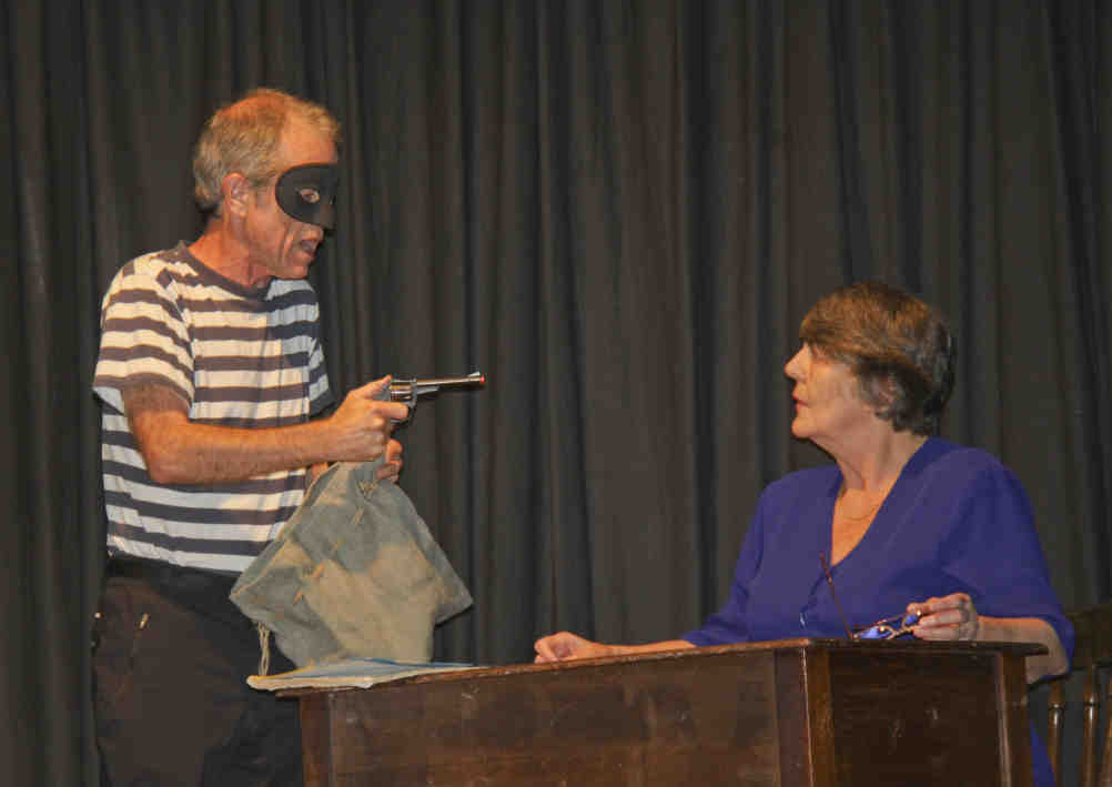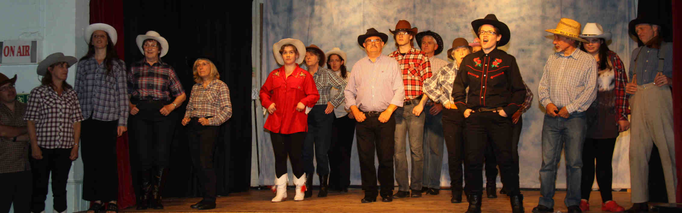 Line dancing to Deb's rendition of 'Rawhide' at the start of Act II |