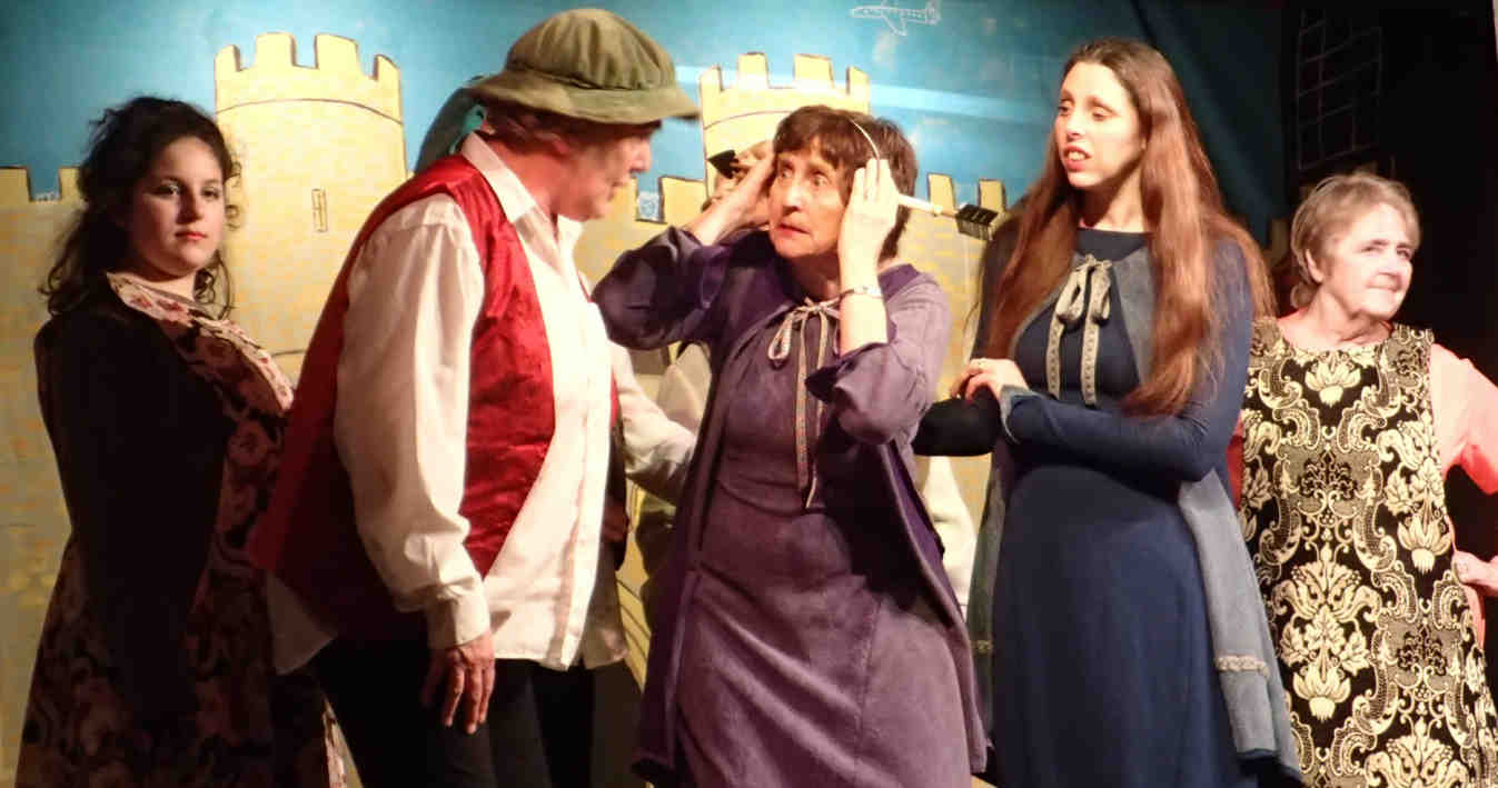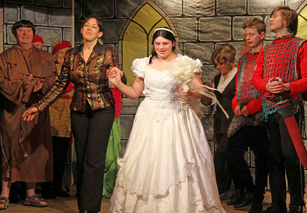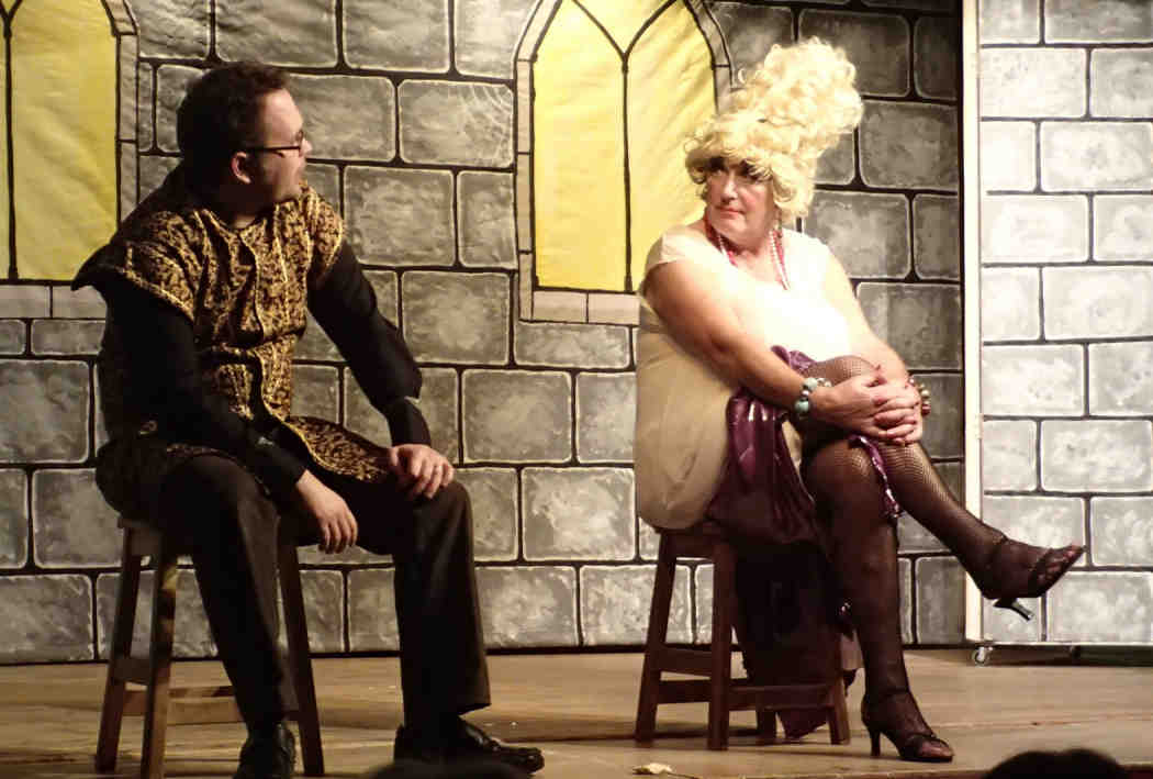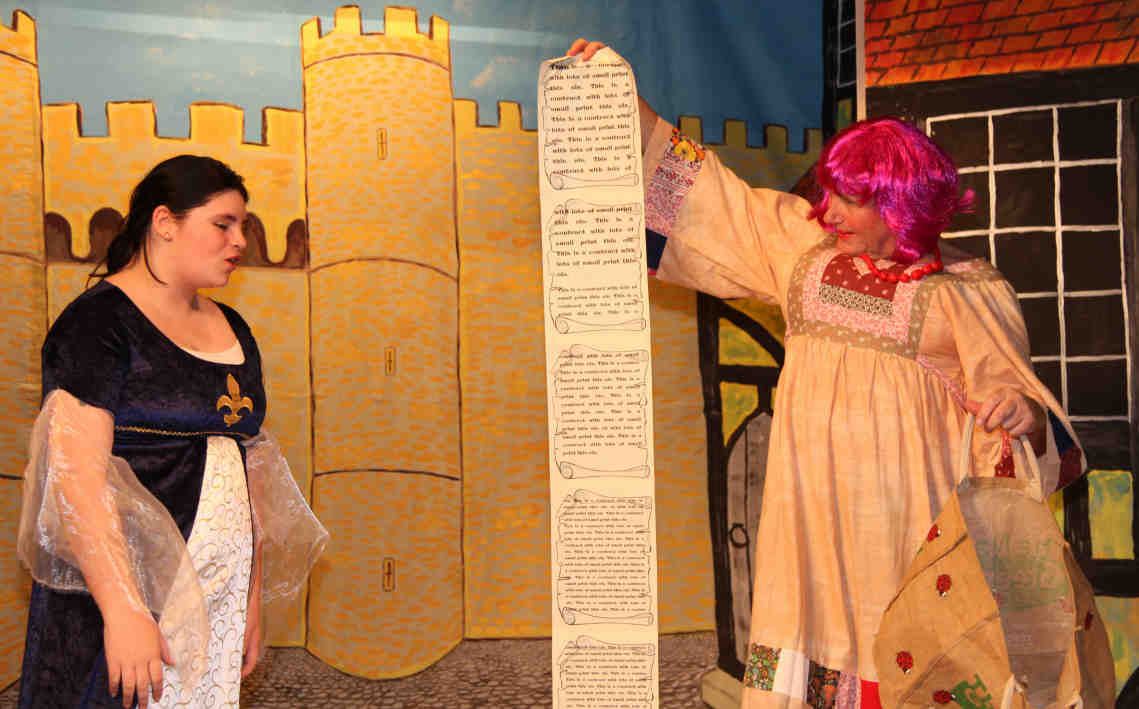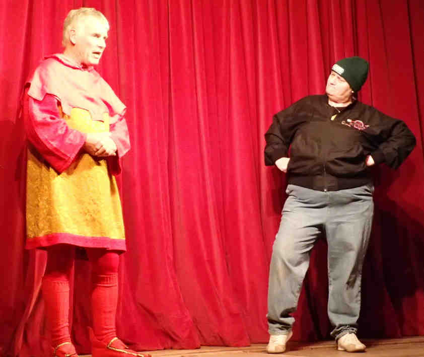 Maid Marion (Zya White) and Mother Hood (Cavan Syrad) horsing about. |