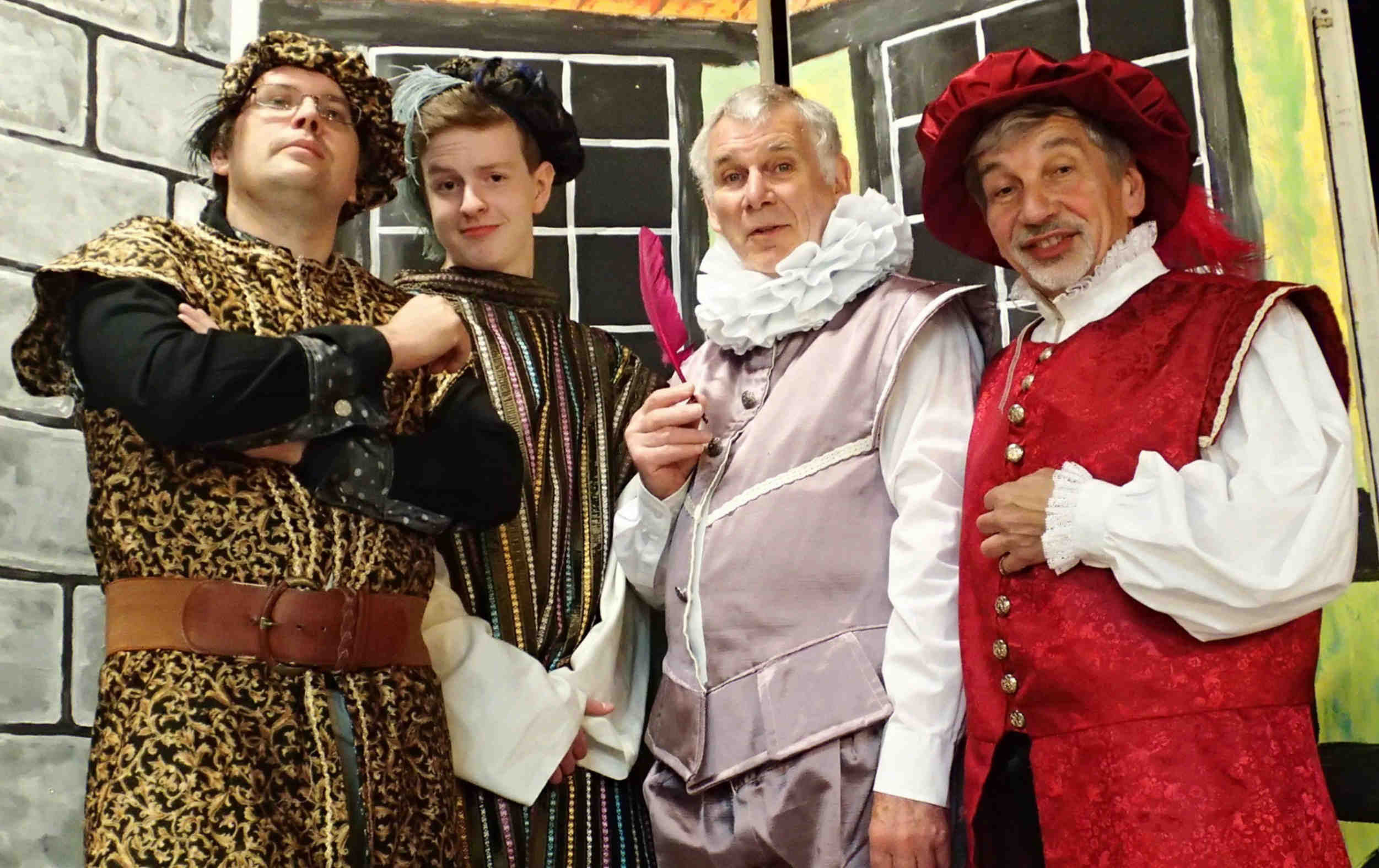 Press photo: Mark Spiller, Thomas Hiller, Jo Smith, Neil Hardinge as the 'four bards' |