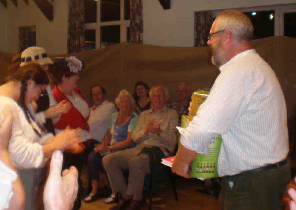 | At the end of the run, the deserving Director gets presented with an illustrated copy of Lark Rise, a pewter mug and some beers to put in it. |