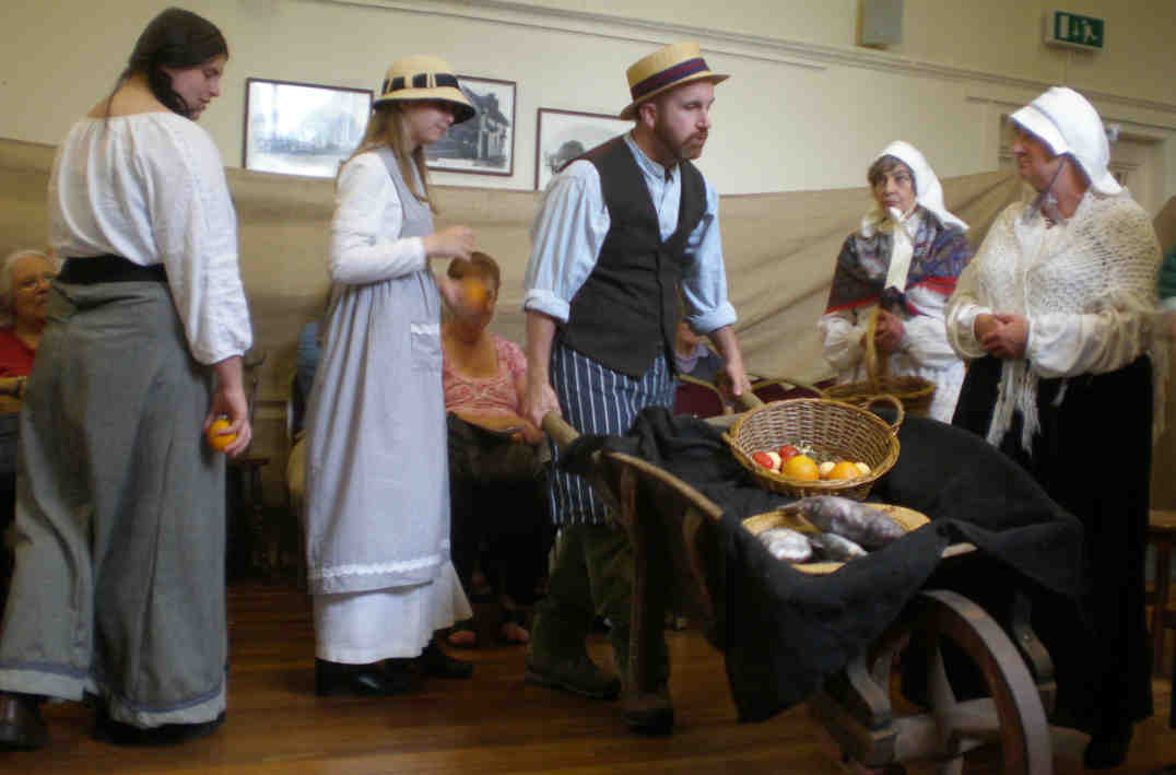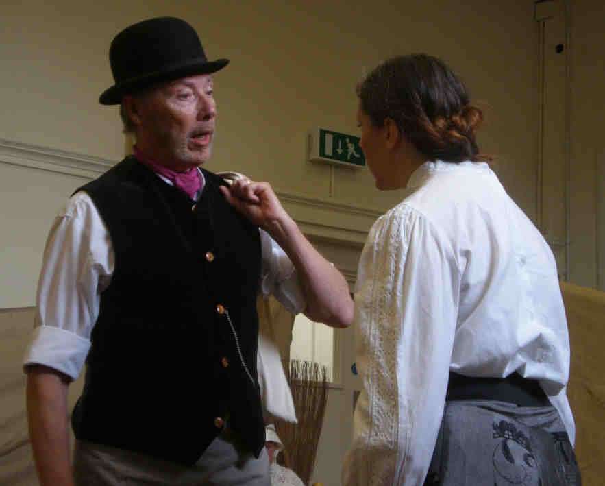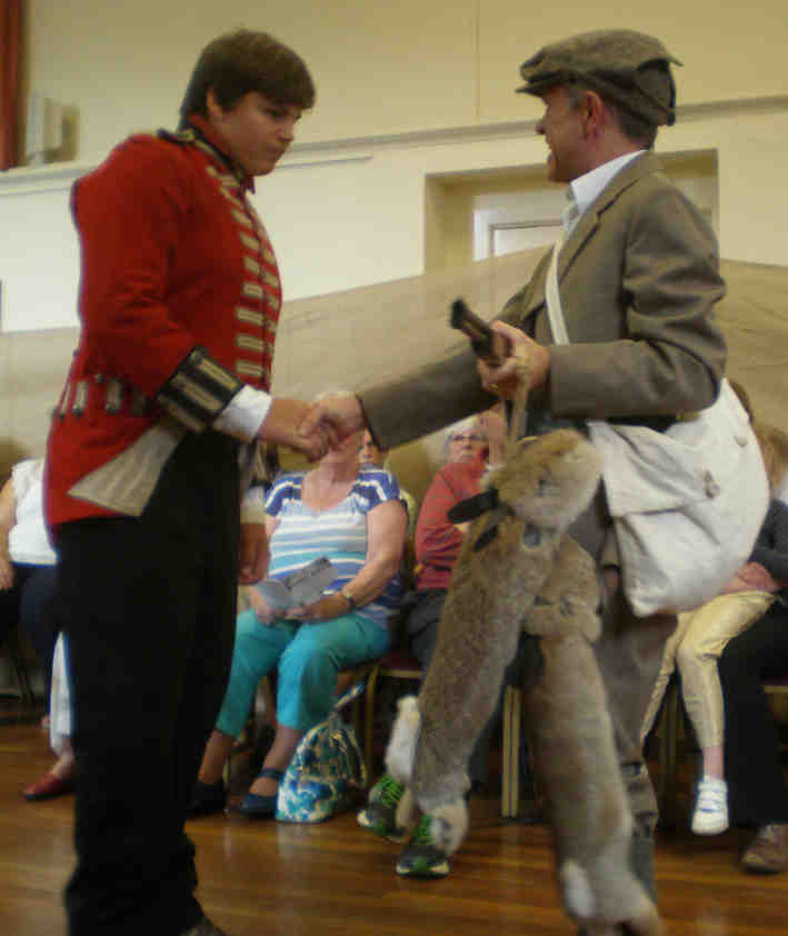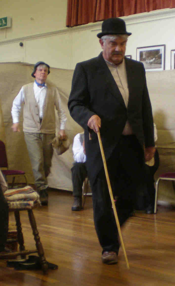 | The Cheapjack arrives, having borrowed Jerry Parish's wheelbarrow! |
