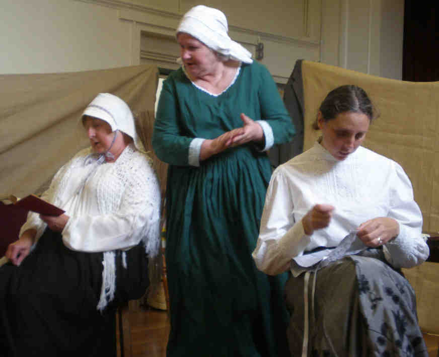 | Mrs Blaby (Pru Harrold) and Mrs Peverill (Caroline Stephenson) discuss Laura: "Not much to look at, is she?" |