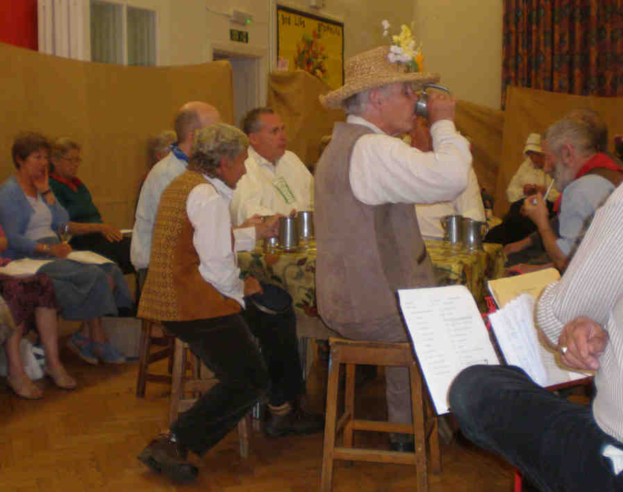 | Meanwhile the mowers are having their evening's half pint in the pub |