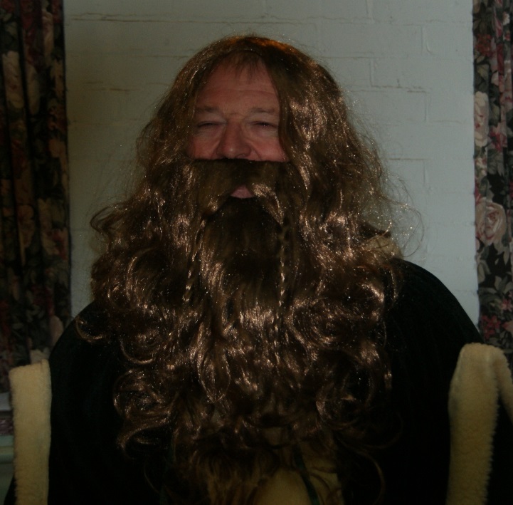 The Ghost of Christmas Present (Martin Wellen) trying his hair on. |