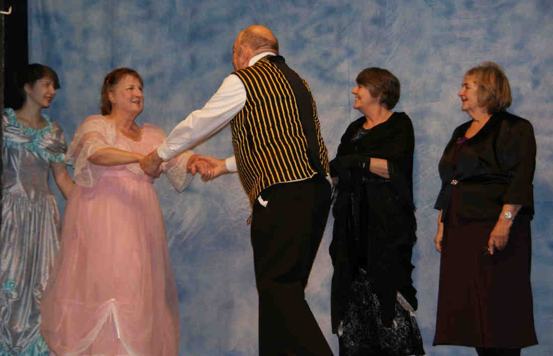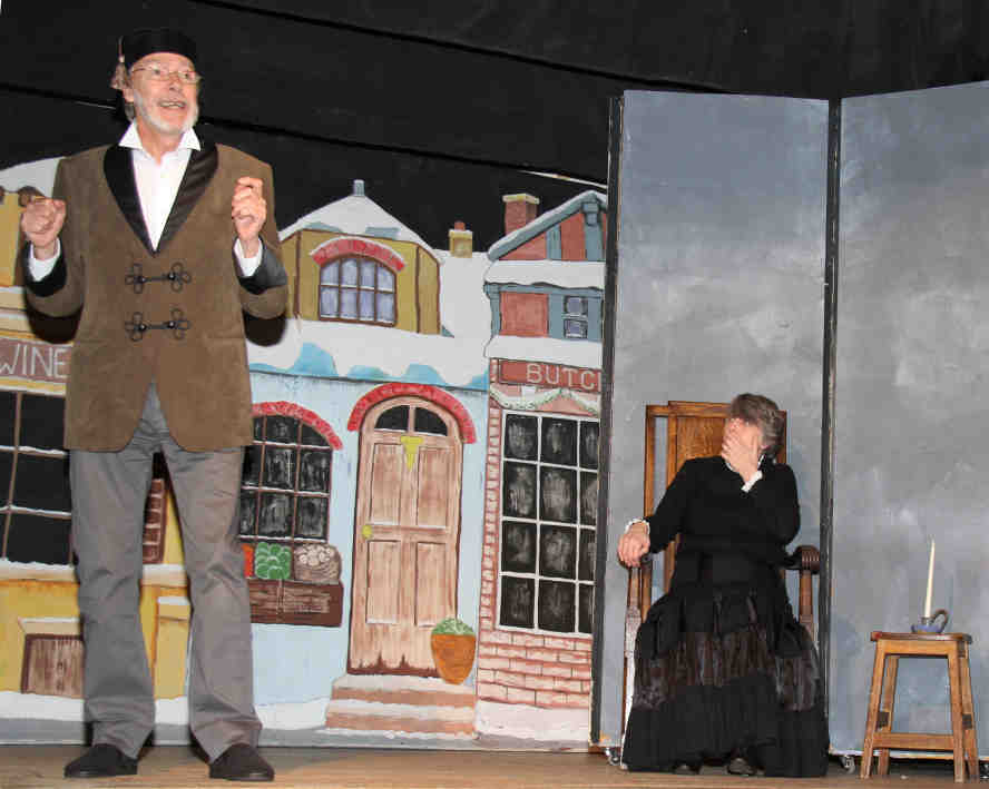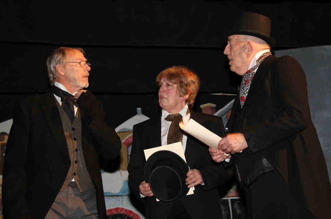 Women (Tina Wareham & Penny McKay, Scrooge's housekeeper!) selling Scrooge's possessions to Joe (Nigel Owens) the pawnbroker |