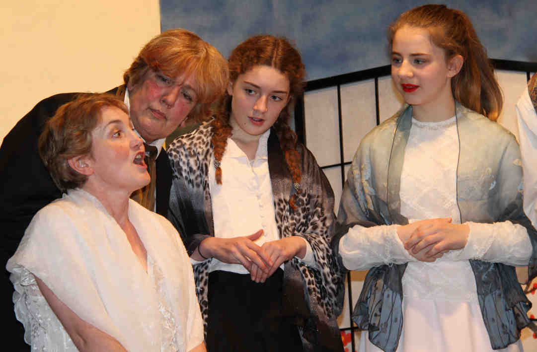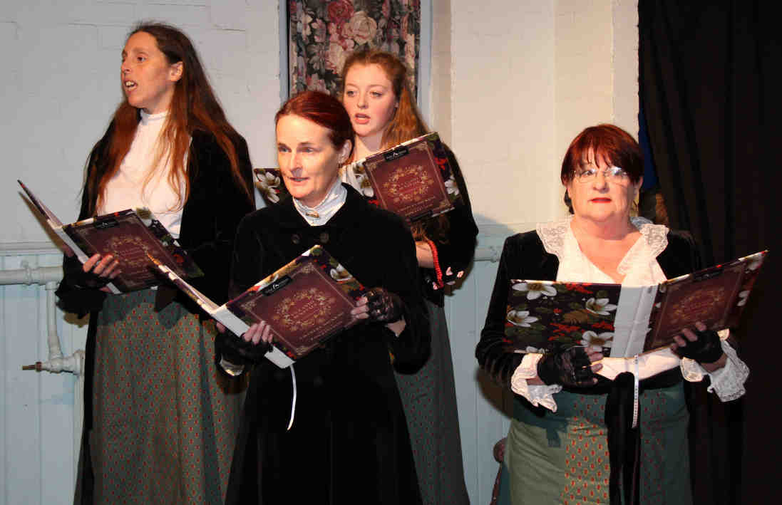 The angelic quartet (Mel White, Sam Owens, Bryony Garrett and Dil Williamson-Smith) link the lines and sing the story along. |