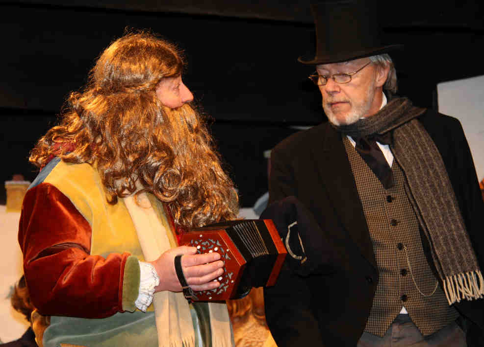 Soon, it is time for the Ghost of Christmas Present (Martin Wellen) to arrive. |