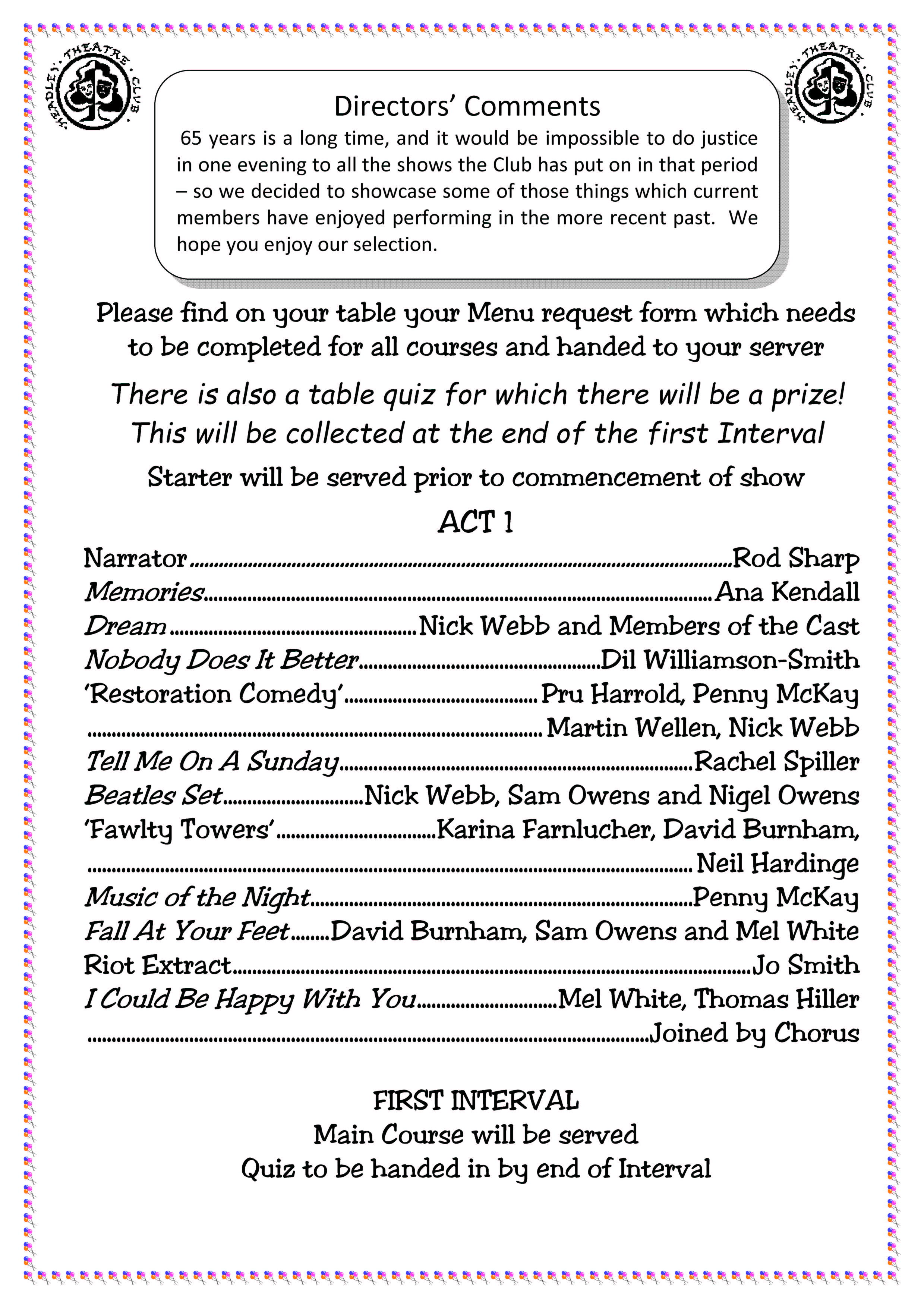 We began on performance nights with Dave Horne singing "Old Fashioned