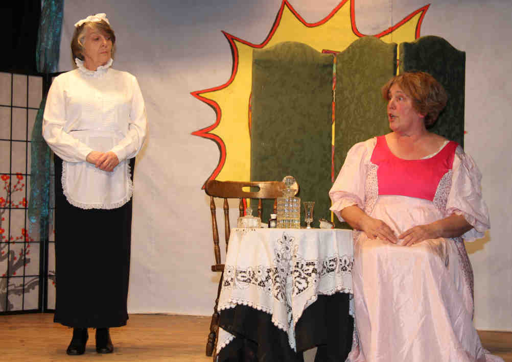 Jill Turner and Wendy Downs play customers whose only role is to sit and drink wine! |