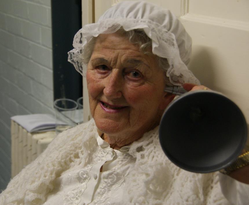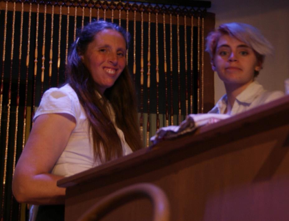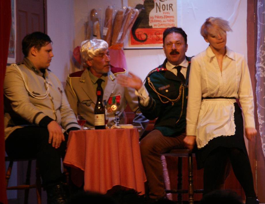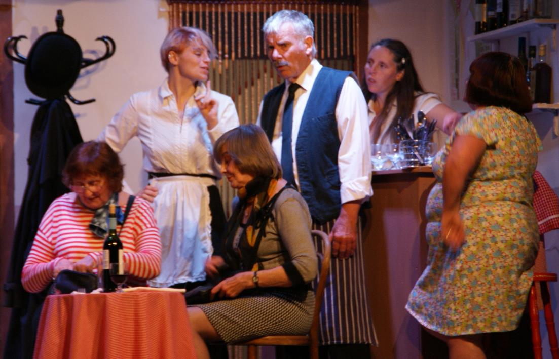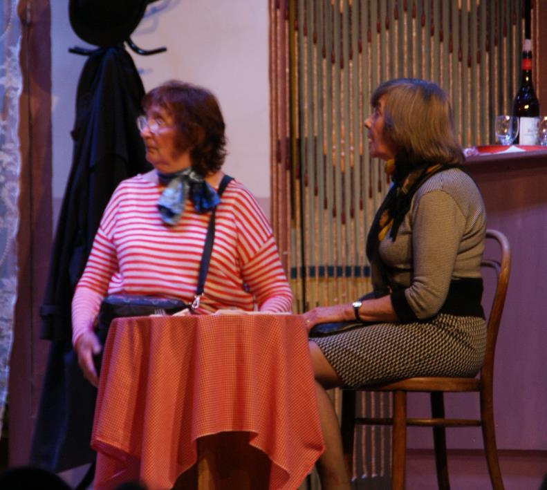 granddaughter Annabelle as a waitress L to R: Annabelle (Annaliese Farnlucher), Fanny, Hortense (Shirley Neil) |