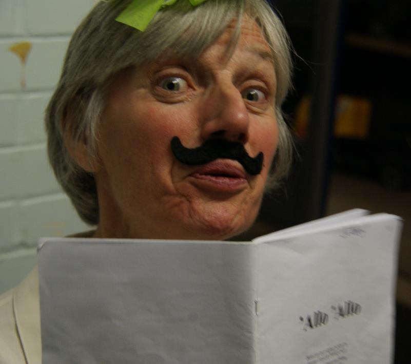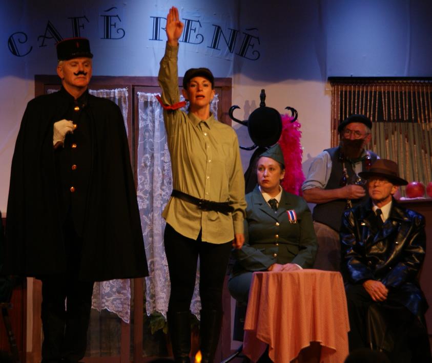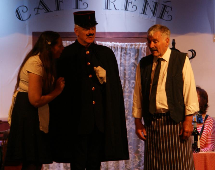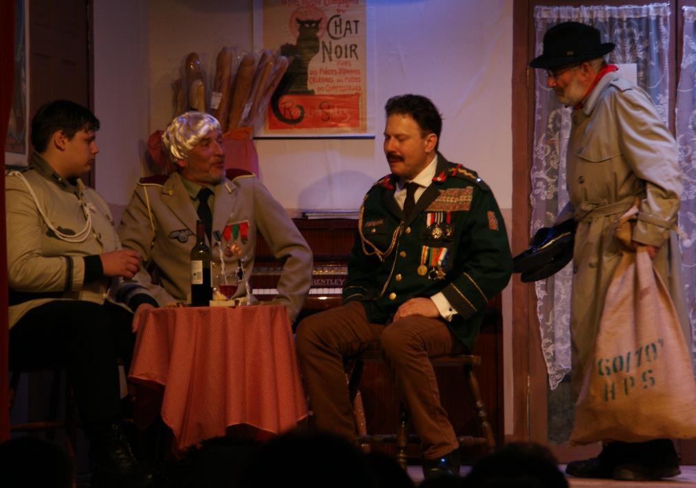 | René: "Already toupee, Colonel?" [L to R: Engelbert von Smallhausen (Zak White), Col Von Strohm (Mike Pennick) René & Capt Alberto Bertorelli (Rufus Kendall)] |