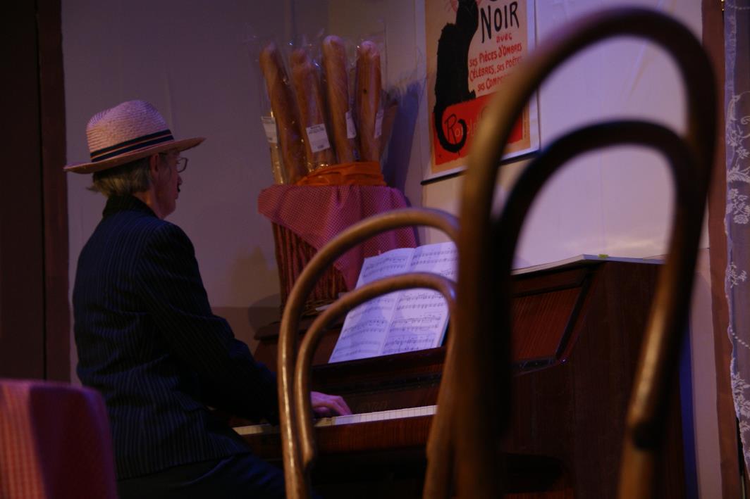 | with Monsieur Alfonse (Jo Levy) playing the piano |