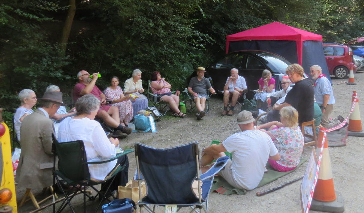 The cast lunching in the car park before the show |