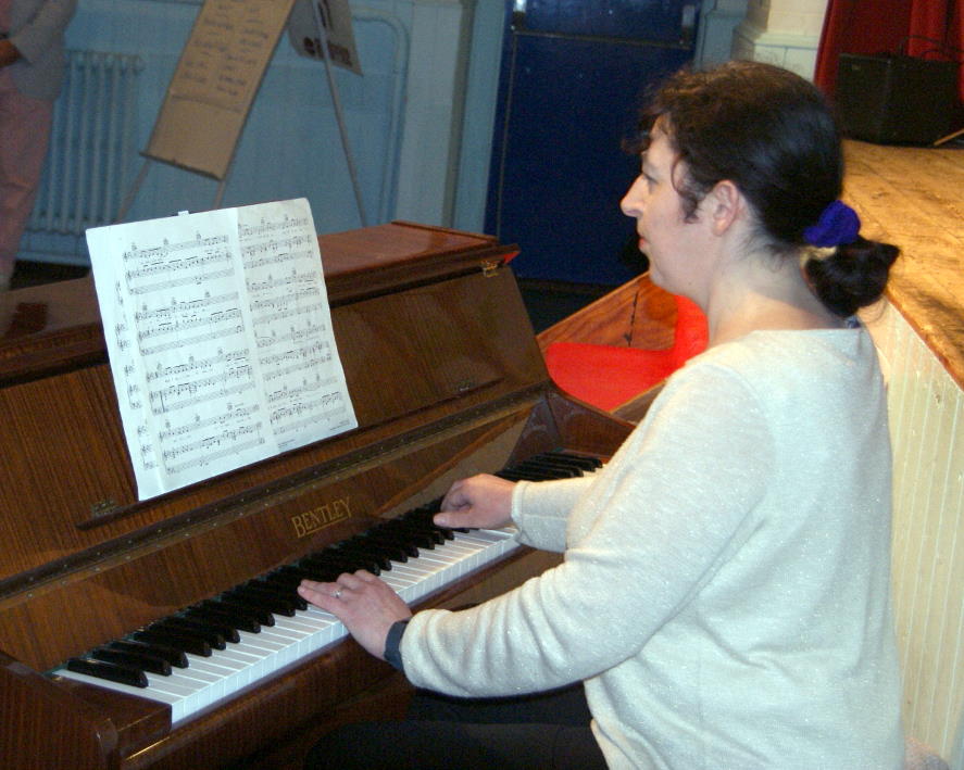 Rachel multi-tasking, playing the piano and singing 'Promise Me'. |