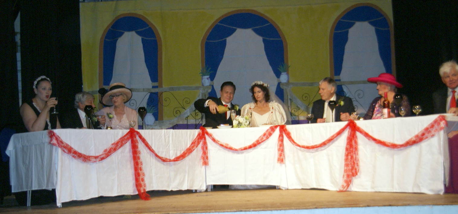 A detective (Chris Millard) appears as by magic and declares the Groom's father has been murdered there was poison in his red wine! |