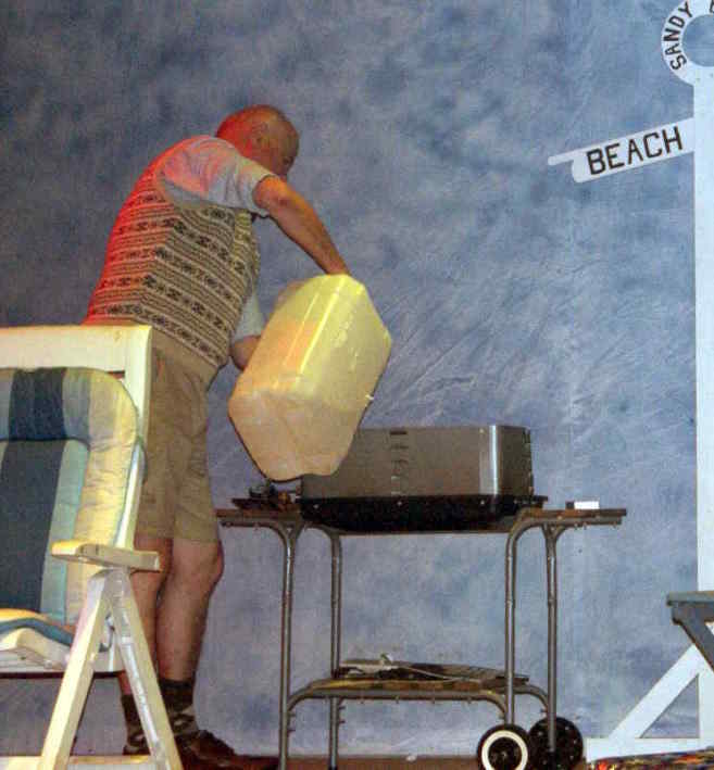 The scene opens with Tony flying his stunt kite. Neville is occupied preparing his annual barbeque. |