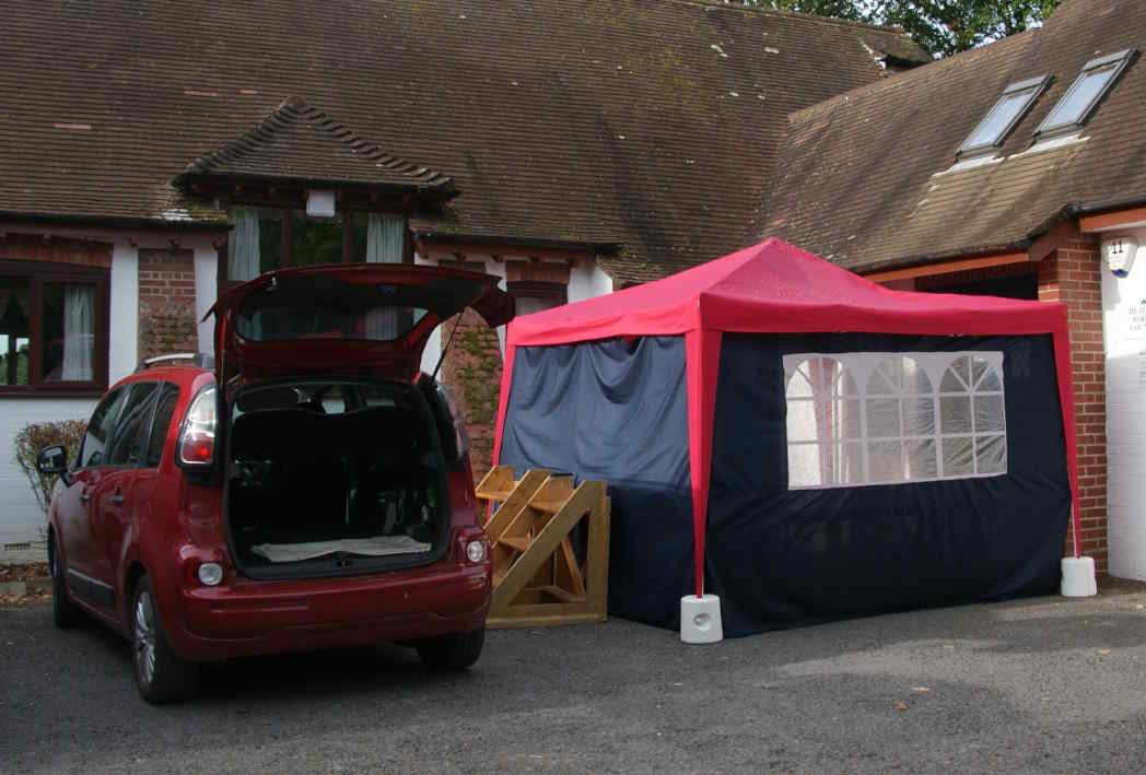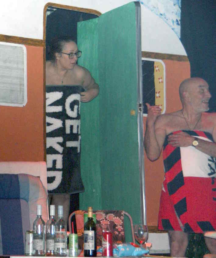 She knocks at the door of Sue's caravan telling Tony to come out |