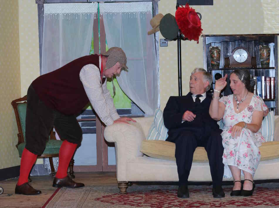 Walter (Jo Smith) enters but his attempt to give his hat and coat to Bridgit is snubbed. |