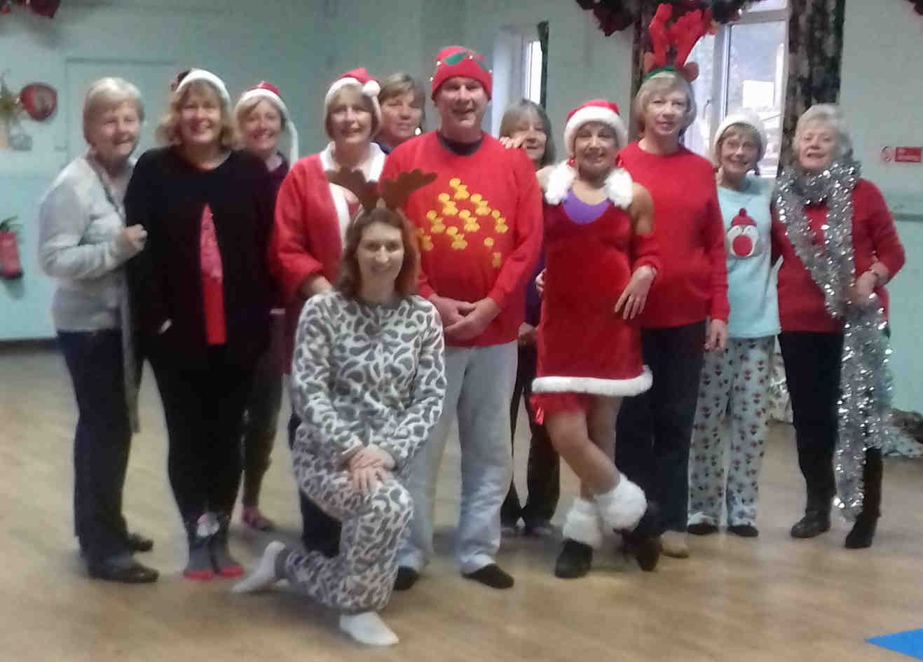 The Wednesday morning Pilates group showing Christmas spirit in December 2016 | and down to work in February 2020 |