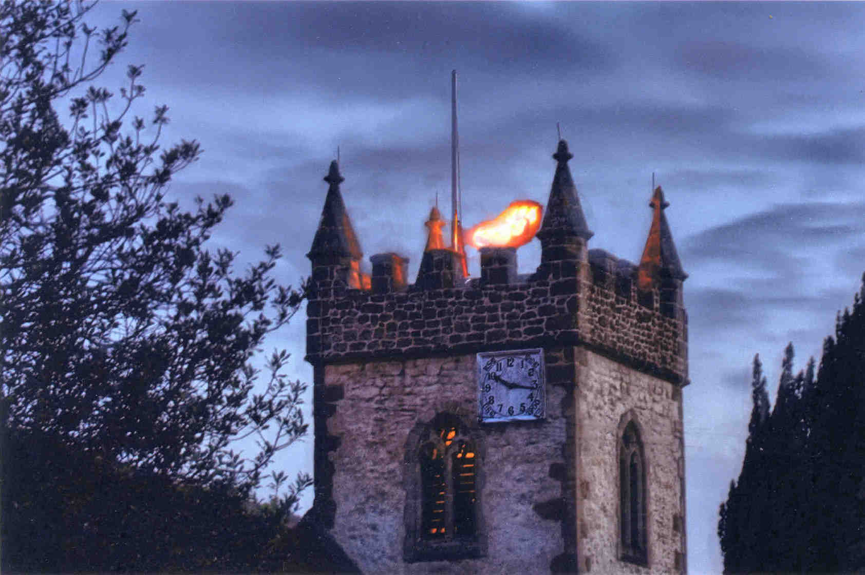 gas-powered Beacon lit on All Saints tower